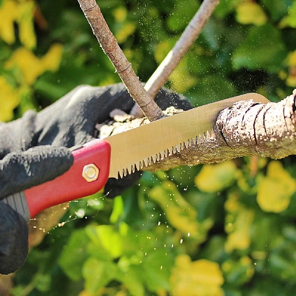 - The pruning saw has a comfortable and attractive wooden handle and the turbo saw has a rubber comfort grip handle, and the blade folds back into the handle for easy transportation around the garden