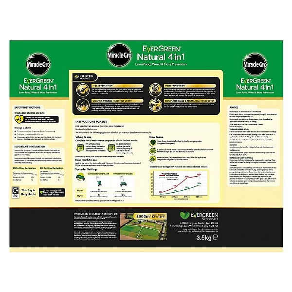 Miracle-Gro Natural 4-in-1 Lawn Food, Weed And Moss Prevention 85m2
